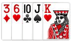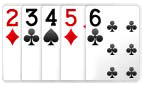 STRAIGHT : kombinasi kartu ini sama dengan STRAIGHT FLUSH, bedanya kalau STRAIGHT tidak memandang bunga, bunganya boleh bebas , misal : 4 ♠¨C 5♥ ¨C 6♦ ¨C 7 ♣ ¨C 8♦ atau 10♥ ¨C J ♣ ¨C Q ♠¨C K♦ – As ♣