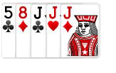 THREE OF KIND : Kombinasi kartu ini hampir sama dengan FOUR OF KIND, bedanya THREE OF KIND hanya membutuhkan 3 angka kartu yang sama. Misal : As♦ ¨C As♥ ¨C As ♠¨C 8 ♣ ¨C 10 ♣ atau 8 ♣ ¨C 8♦ ¨C 8♥ ¨C 4 ♠¨C 1♦
